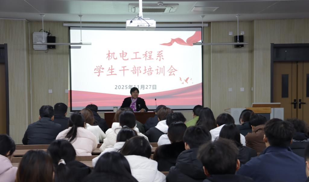 为进一步加强学生干部队伍建设,充分发挥学生干部的模范作用,机电工程系于11月27日在日新楼C404召开学生干部培训会。系党总支书记田金菊、团总支书记喻学涛、全体专职辅导员及主要学生干部参会。